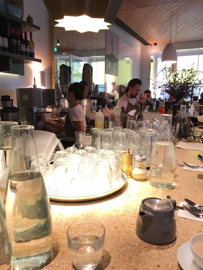 厨房は店の奥にあって、カウンターでは飲み物やスムージー用の野菜などの準備をしていて、なかなか賑やかだったけれど、手元が見えるので飽きない。
